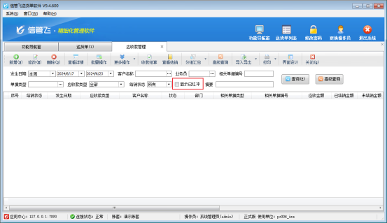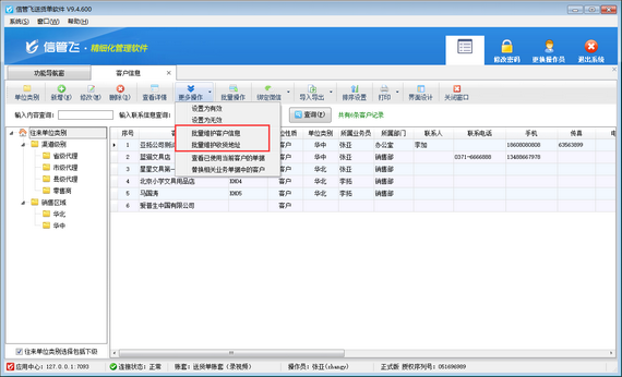 信管飛RMS、信管飛送貨單軟件、信管飛倉庫管理軟件等都支持批量維護客戶信息,可批量維護客戶信息的名稱、聯系人、電話、地址等信息。有用戶操作員賬號登錄送貨單軟件時,無法批量維護客戶信息,如下圖所示,批量維護客戶信息功能為灰色顯示。 演示視頻觀看鏈接:操作員不可批量維護客戶信息,如何解決演示視頻