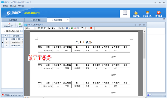 在企業(yè)管理中,計件工資的核算是一項既繁瑣又重要的工作。為了幫助企業(yè)更好地管理計件工資,信管飛出納記賬軟件提供了全面且精準(zhǔn)的解決方案。 該軟件支持用戶輕松設(shè)置不同工種的計件單價,確保每一筆工資的計算都準(zhǔn)確無誤。用戶只需將相關(guān)數(shù)據(jù)錄入系統(tǒng),軟件便會自動進(jìn)行工資計算,大大減輕了財務(wù)人員的負(fù)擔(dān)。