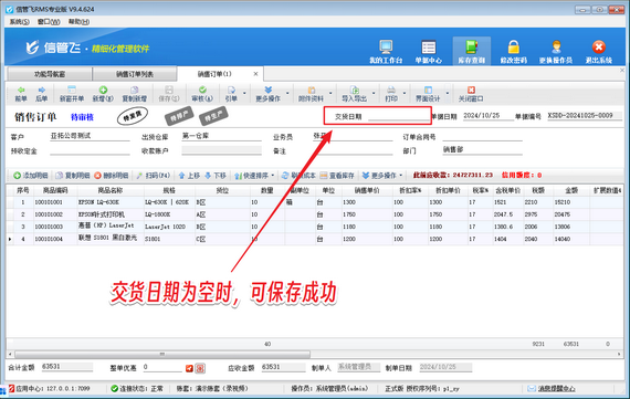 有用戶在使用信管飛軟件時,填開銷售訂單保存不成功,提示“交貨日期不能為空,請輸入”,訂單無法保存,如下圖所示。 演示視頻觀看鏈接:銷售訂單保存時提示“交貨日期不能為空”,訂單無法保存如何解決演示視頻 出現(xiàn)以上問題的原因是:啟用了參數(shù)“訂單保存時交貨日期不能為空”導(dǎo)致。