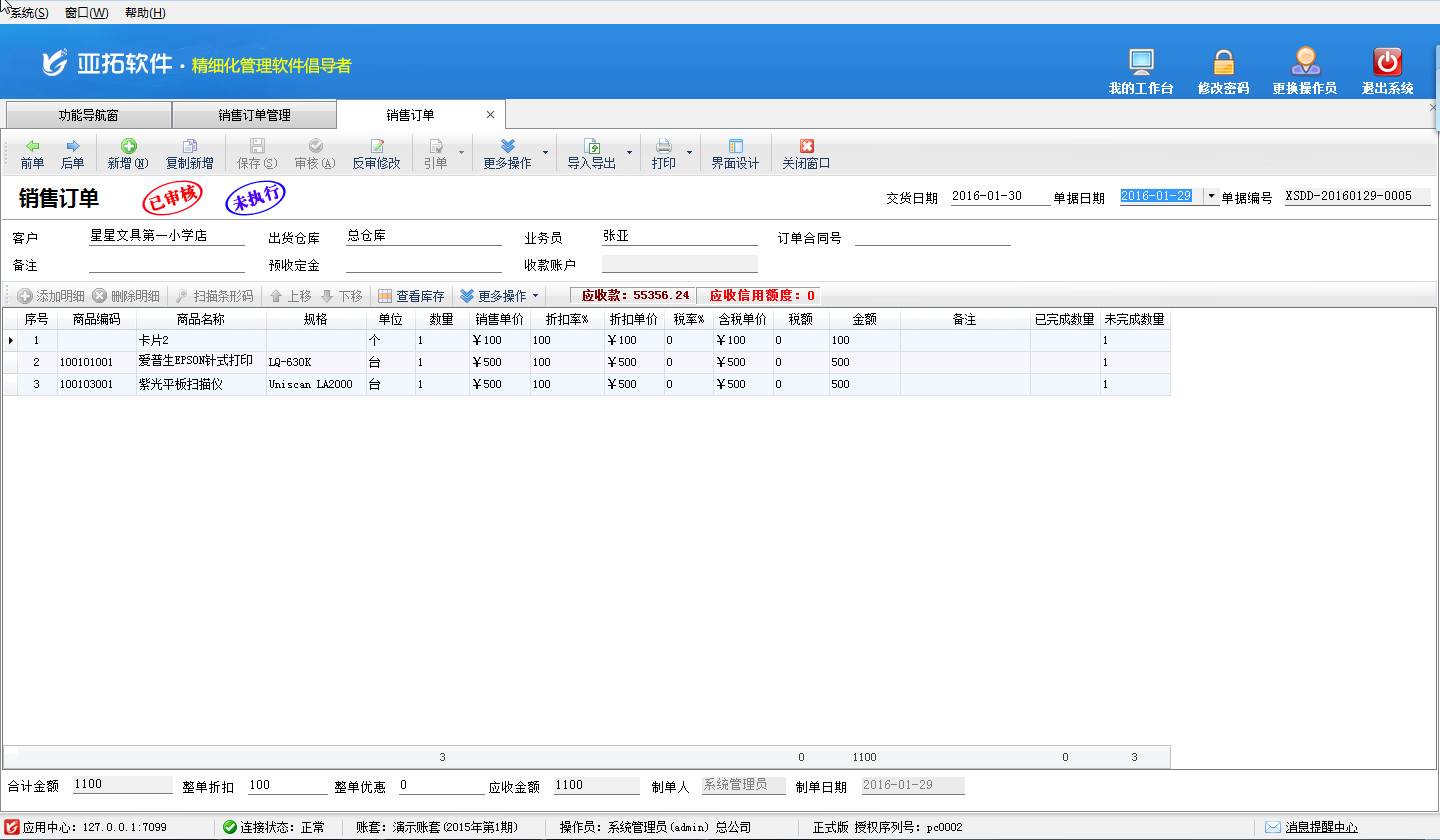進銷存管理軟件中的銷售訂貨管理,用于管理銷售意向,使用銷售訂單管理功能,后續可以跟蹤發貨情況,并可在銷售出庫單(銷售單)開單時引單。需要注意的是訂單不影響倉庫庫存。銷售訂單并非必須使用的功能,如果使用銷售訂單功能,可以開“銷售出庫單”時,引用(即調取)銷售訂單,保存并審核銷售出庫單后,軟件會自動更新相應銷售訂單中商品明細的已完成(即已發貨)數量和銷售訂單的執行