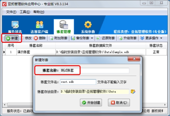 賬套即賬套數據庫,這是一個會計業務引申出來的概念,賬套數據庫中存儲業務數據。使用軟件之前建議新增加一個賬套,用于重新錄入和管理數據,亞拓管理軟件(星光版、標準版、專業版)、紅管家倉庫管理軟件(標準版、專業版)、紅管家送貨單軟件、紅管家票據打印軟件等軟件的賬套都是在主機電腦的應用中心程序上集中管理的,下面我們以亞拓管理軟件專業版為例詳細介紹下在使用軟件