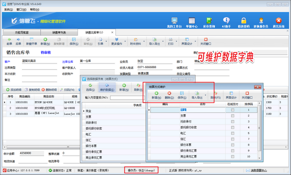 信管飛RMS支持?jǐn)?shù)據(jù)字典功能,可以將常用內(nèi)容維護(hù)到數(shù)據(jù)字典內(nèi),方便開單時(shí)候直接選擇錄入,例如“結(jié)算方式”。有用戶操作員賬號登錄無法維護(hù)數(shù)據(jù)字典,如下圖所示。 演示視頻觀看鏈接:操作員賬號無法維護(hù)數(shù)據(jù)字典,如何解決演示視頻 出現(xiàn)以上問題的原因是:當(dāng)前登錄的操作員賬號沒有數(shù)據(jù)字典維護(hù)的權(quán)限。&