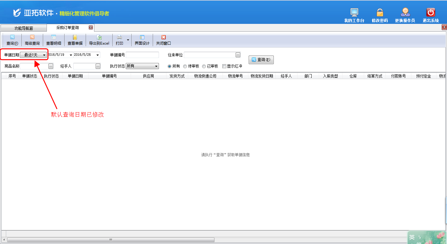 亞拓管理軟件(精細(xì)化管理軟件、進(jìn)銷存管理軟件、記賬軟件)及紅管家倉庫管理軟件內(nèi)都包含了統(tǒng)計查詢功能(采購單匯總表、銷售單匯總表、銷售單明細(xì)查詢、銷售毛利匯總等統(tǒng)計查詢報表),軟件內(nèi)統(tǒng)計查詢功能默認(rèn)的查詢?nèi)掌跒椤白罱?個月”(如下圖一所示),但是如果需要修改默認(rèn)查詢?nèi)掌冢撊绾涡薷哪兀肯旅嫖覀円詠喭毓芾碥浖䦟I(yè)版為例詳細(xì)介紹下軟件內(nèi)如何修改默認(rèn)查詢?nèi)掌凇D一&nb