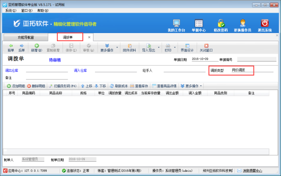 對于存在多個倉庫的企業來說,對不同倉庫的商品直接進行調撥,是一種很常見的業務。亞拓軟件下的進銷存軟件——亞拓管理軟件和亞拓倉庫管理軟件都支持分倉庫管理商品,其中亞拓管理軟件標準版和專業版、亞拓倉庫管理軟件都支持倉庫調撥功能,可以方便的進行倉庫之間的貨品轉移。    調撥分為同價調撥和變價調撥兩種,有客戶是一直采用一種調撥方式,軟件