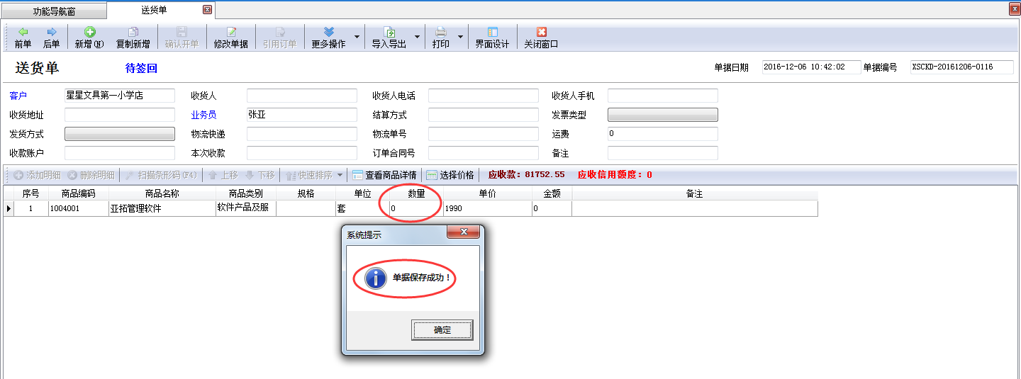 紅管家送貨單軟件、亞拓管理軟件等在單據(jù)保存的時(shí)候會(huì)自動(dòng)生成單據(jù)編號(hào),可根據(jù)此單據(jù)編號(hào)來查詢單據(jù)信息。為了更加自定義編號(hào)內(nèi)容,軟件支持修改自動(dòng)生成的單據(jù)編號(hào),以送貨單軟件為例,示范如何修改已生成的單據(jù)編號(hào)。 在“業(yè)務(wù)處理”界面新增一個(gè)送貨單單據(jù),開單并保存單據(jù),單據(jù)會(huì)直接自動(dòng)生成一個(gè)單據(jù)編號(hào),如下圖1所示