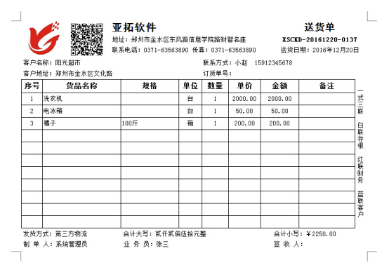 紅管家送貨單打印軟件是一款針對(duì)中小型企業(yè)開發(fā)的集送貨管理(發(fā)貨管理)、退貨管理(銷售退貨)、銷售收款(應(yīng)收款管理)等功能為一體的送貨管理及打印軟件。 紅管家送貨單軟件內(nèi)置有模板設(shè)計(jì)器,軟件中提供數(shù)十種送貨單格式(發(fā)貨單格式),為了滿足更多客戶的需求,除了可以打印單據(jù)基本數(shù)據(jù)外,模板設(shè)計(jì)器增加了“二維碼”組件,可以實(shí)現(xiàn)“二維碼