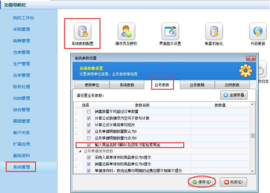 亞拓管理軟件(星光版、標準版、專業版)、紅管家倉庫管理軟件及紅管家送貨單軟件都支持在開單的時候直接輸入商品,軟件默認設置是需要輸入商品后需要Enter鍵確認,如需要不按回車鍵檢索直接輸入需要設置一下軟件的業務參數。 以亞拓管理軟件為例,詳細介紹如何設置開單輸入商品后直接檢索?在導航窗選擇“系統管理”—