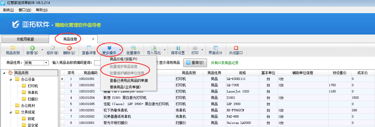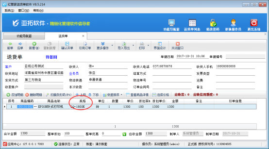 亞拓管理軟件、紅管家送貨單軟件、倉庫管理軟件都支持在“基礎資料”—》“商品信息”中維護商品的規格信息,軟件默認允許開單可以直接在單據明細中修改商品規格,為了避免開單修改商品規格,軟件可以設置開單時單據明細中的商品規格不允許修改,我們以送貨單軟件為例示范下如何設置? 首先我們在“基礎資料”—》“商品信息