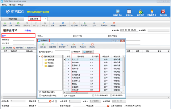亞拓管理軟件、信管飛倉庫管理軟件、信管飛送貨單軟件開單時都可以直接從客戶信息中選擇已有的客戶進行開單,軟件都支持對客戶信息進行排序。開單選擇客戶時彈出的“選擇客戶”窗口中客戶信息顯示的先后順序如果需要調整,可以到客戶信息中調整。下面我們以亞拓管理軟件專業版為例介紹一下對客戶信息排序的操作方法。 登錄軟件,在功能導航窗點“基礎
