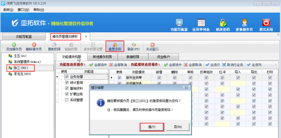 亞拓管理軟件、信管飛倉庫管理軟件、信管飛送貨單軟件、信管飛出納記賬軟件、信管飛票據打印軟件等都支持多個操作員登錄使用軟件,如果使用軟件過程中把操作員登錄密碼忘了該怎么辦?下面我們以信管飛送貨單軟件為例詳細介紹一下如何重置操作員登陸密碼。 重置操作員密碼需要系統管理員登錄軟件,如圖1所示。圖1
