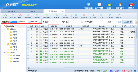信管飛送貨單軟件、信管飛RMS軟件、信管飛倉(cāng)庫(kù)管理軟件等都支持進(jìn)行開(kāi)單操作,對(duì)正式用軟件之前的單據(jù)補(bǔ)錄,或者中間單據(jù)少開(kāi)的,軟件支持按照之前日期進(jìn)行開(kāi)單,可以開(kāi)單修改單據(jù)日期為指定日期。 以信管飛送貨單軟件為例,示范下送貨單如何開(kāi)其他日期的單據(jù)。 在功能