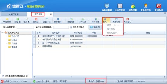 信管飛RMS軟件、信管飛倉(cāng)庫(kù)管理軟件、信管飛送貨單軟件等都支持設(shè)置操作員權(quán)限,以控制操作員登錄軟件所顯示的功能,如公司需要限定操作員僅能查看和選擇自己所屬客戶信息,軟件中可以進(jìn)行控制。 以“信管飛送貨單軟件”為例,示范下如何控制操作員僅能查看所屬為自己的客戶信息。首先需要在客戶信息中進(jìn)行整理下客戶的所