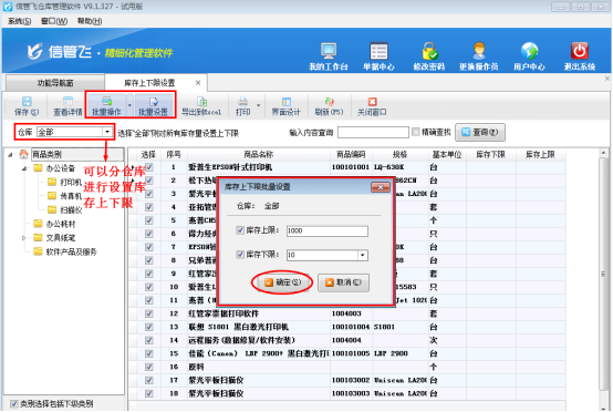 信管飛倉(cāng)庫(kù)管理軟件、信管飛RMS支持庫(kù)存管理功能,為了更直觀的發(fā)現(xiàn)庫(kù)存數(shù)量,軟件中可以對(duì)商品庫(kù)存數(shù)量進(jìn)行庫(kù)存上下限設(shè)置,并可以在倉(cāng)庫(kù)管理模塊中的“相關(guān)查詢統(tǒng)計(jì)”中進(jìn)行庫(kù)存預(yù)警查詢。以信管飛倉(cāng)庫(kù)管理軟件為例,我們介紹一下如何設(shè)置庫(kù)存的上下限數(shù)量。 在功能導(dǎo)航窗選擇“倉(cāng)庫(kù)管理”—》“庫(kù)存上下限設(shè)置”進(jìn)入庫(kù)存上下限設(shè)置界面,如圖1