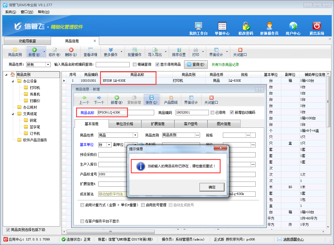 亞拓軟件自主研發(fā)的信管飛RMS、信管飛送貨單軟件、信管飛倉庫管理軟件等都支持新增商品信息,為了避免增加的商品信息出現(xiàn)重復(fù),軟件支持參數(shù)設(shè)置商品名稱不可重復(fù)。 以信管飛RMS為例,在系統(tǒng)管理—》系統(tǒng)參數(shù)配置—》業(yè)務(wù)參數(shù)內(nèi)將“數(shù)據(jù)可否重復(fù)參數(shù)”中的“商品名稱可重復(fù)”參數(shù)的勾選取消,然后保存設(shè)置。如下圖所示: