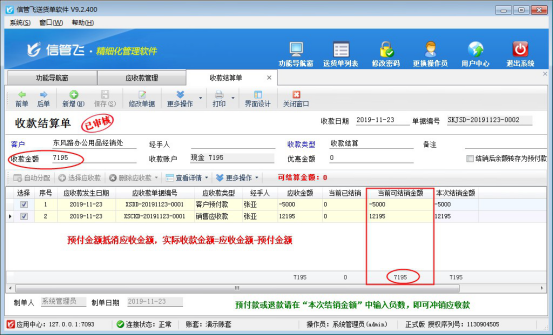 信管飛送貨單軟件、信管飛RMS軟件等支持錄入客戶的預付款,客戶預付款是指客戶付定金給我們,在實際發貨后會收回應收款,此時軟件收款結算中支持客戶應收款可以抵消之前客戶的預付款。本文以“信管飛送貨單軟件”為例,示范下應收款如何抵消客戶預付款? 首先需要新增客戶的預付款,有以下兩種方式: ①客戶
