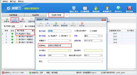 出納記賬軟件下載安裝完成后,使用演示賬套中的資金賬戶登記現金日記賬,在現金日記賬界面,點擊“查看賬簿”,可進入現金賬簿界面,如下圖1所示,可看到核算單位顯示:亞拓辦公用品公司,如果需要修改為自己公司信息,該如何修改?本文以“信管飛出納記賬軟件”為例,示范如何修改現金賬簿中的核算單位。 圖1