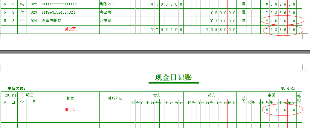紅管家財務出納記賬系統和紅管家出納軟件免費版中的現金賬簿和銀行賬簿,在帳頁剛好滿頁時存在一個Bug,如下圖所示: 上圖所示的“過次頁的余額”本應該為2686.00,但賬簿中卻顯示為:3386.00,也即此頁最后一個憑證的上一個憑證的余額。出現這個Bug的問題在于程序采用的報表控件存在缺陷導致。如果再錄入一個憑證,這個錯誤就會