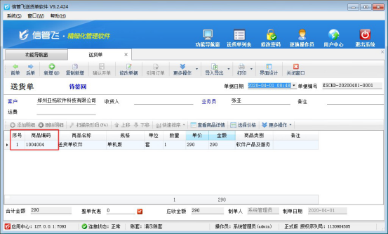 信管飛系列軟件都支持設置界面顯示風格,可設置界面的顯示高度和字體大小,本篇文章以“信管飛送貨單軟件”為例。示范下如何調整開單界面的標題行和數據項的行高。 調整前行高如下圖所示: 登錄軟件界面,在左上角的系統按鈕下選擇“界面顯示設置”可進入界面顯示調整界