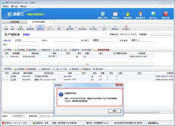 生產任務單,即生產過程中的任務加工單,用于執行生產計劃,進入實際生產階段。生產領料出庫單,即生產過程中可通過開“生產領料出庫單”領取原材料出庫。軟件內生產領料出庫單支持引用生產任務單進行領料出庫,本篇文章介紹一下進銷存軟件如何設置生產領料單數量不可大于生產任務單數量? 在功能導航窗點擊“系統管理”—》“系統參數配置”—》“業