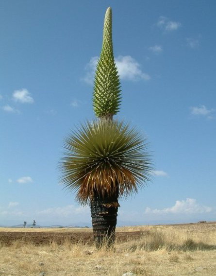 1867年,旅行家安東尼奧·雷蒙達在南美徒步探險,當他歷盡艱辛登上海拔四千多米的安第斯高原時,被荒涼的草地上一種巨大的草本植物吸引了。他奔到近前,植物正在開著花兒,極是壯觀,巨大的花穗高達10米,像一座座塔般矗立著。每個花穗之上約有上萬朵花,空氣中流動著濃郁的香氣。雷蒙達走遍世界各地,從未見過這樣的奇花異草,他滿懷驚嘆地繞著這些花細細地觀賞。他發現,有的花正在凋謝,而花謝落之后,植物便枯萎而死!花落即亡,這到底是什么植物?